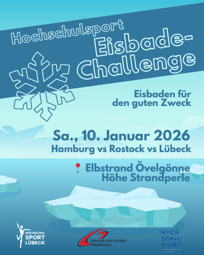 Gleichzeitig wollen wir in den Wettkampf treten mit dem Hochschulsport Lübeck und Rostock - seid dabei und sogt dafür, dass Hamburg die meisten Eisbadenden ins kalte Wasser bekommt!